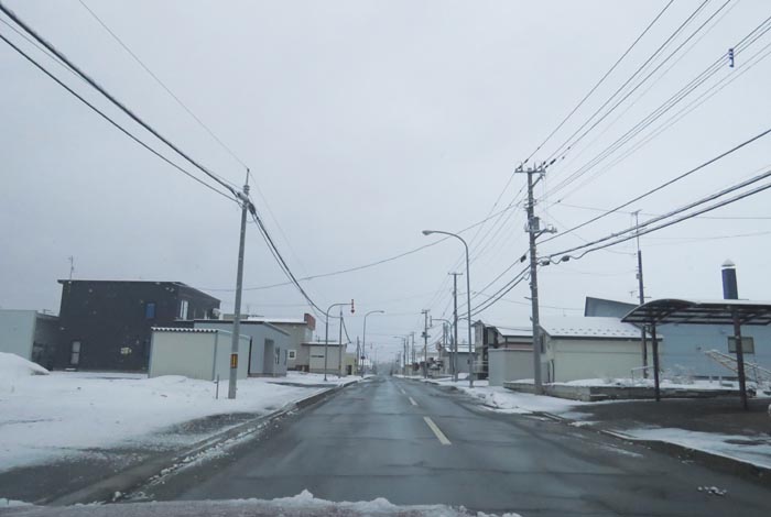 産岸通りから左折して西5号線のバス停前から北光通り交差点方向