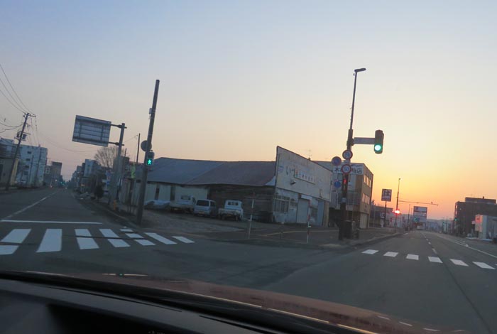 南岸通り、とん田通りの交差点から右は北光神社方向