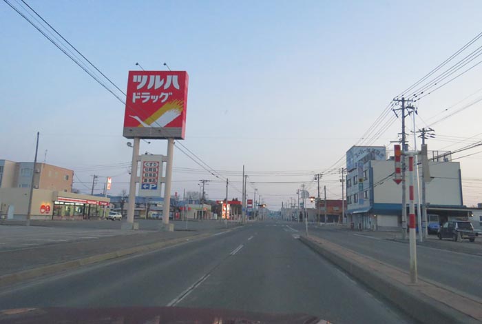 末広町の南岸通り、西4号線バス停前から野付牛自動車学校方向