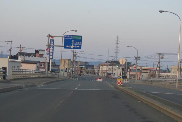 とん田通り、無加川橋を渡り錦町の南岸通り交差点
