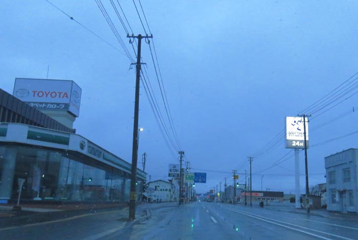 午前5時00分、北4条通りの国道39号交差点を右折で緑園通り方向