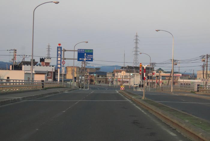 とん田通り、無加川橋を渡り錦町の南岸通り交差点