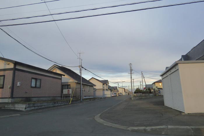 産岸通りから左折して西5号線のバス停前から北光通り交差点方向