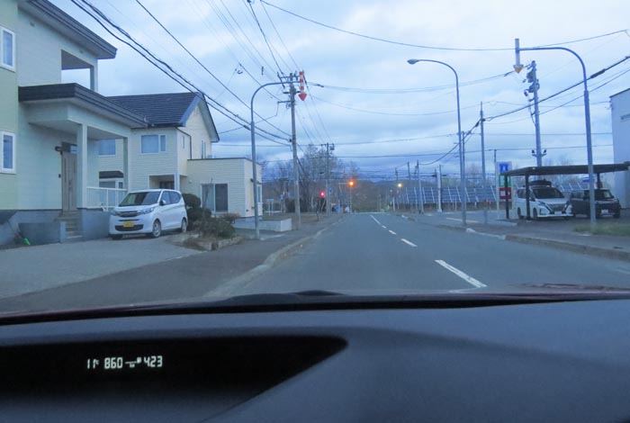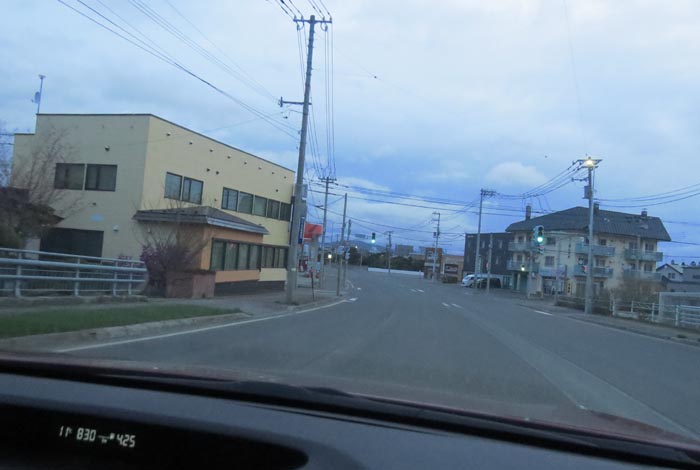 南岸通り、野付牛自動車学校前、前方はとん田通りの交差点