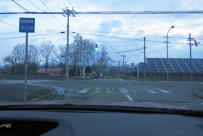 南岸通り、野付牛自動車学校前、前方はとん田通りの交差点