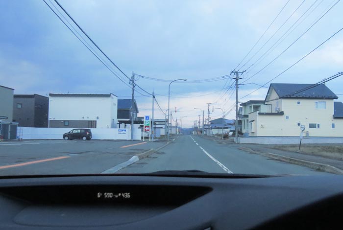 産岸通りから左折して西5号線のバス停前から北光通り交差点方向