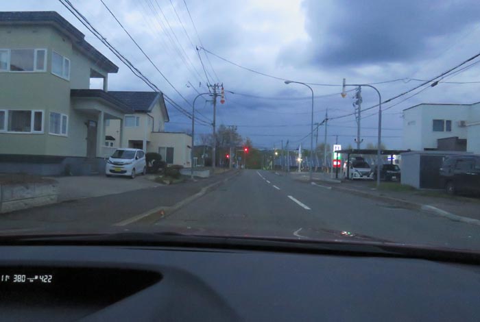 南岸通り、野付牛自動車学校前、前方はとん田通りの交差点