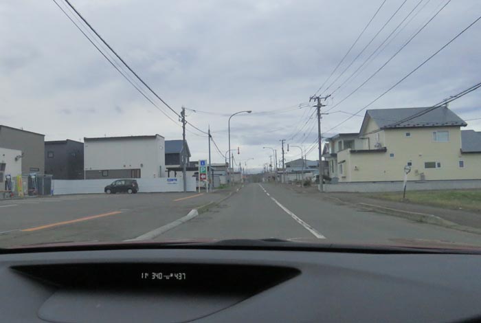 産岸通りから左折して西5号線のバス停前から北光通り交差点方向