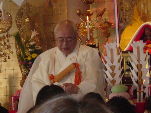 厄払いの方達が前面に集まりお祓いの最中。一人一人の頭に手?をあてていきます。ちなみに私は今年1年間の健康・仕事の祈願と交通安全祈願をしてきました。(毎年)