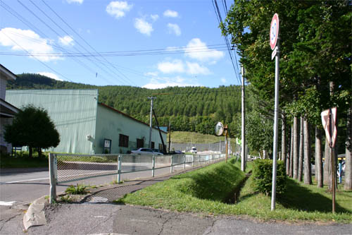 小学校前の通り(写真奥は学友橋)