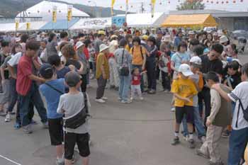 | 佐呂間町のカボチャまつり「シンデレラ夢2002」(実行委主催)は8日、町民センター前駐車場で巨大カボチャ「アトランティックジャイアント」の重量コンテスト、巨大ビンゴマシ ーンによる大抽選会などが行われ、全日程を終了しました。晴れ間がのぞく絶好の空模様のもと、来場者たちはビールを片手に祭りを楽しんでいました。実行委のみなさん、お疲れさまでした。(遠軽方面支局長・ぴかちゅ) |
