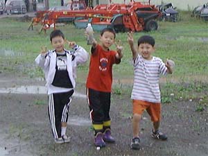 我が家の前の広場の水たまりで、毎日のように遊んでいる悪餓鬼の姿を見る。アメンボウでも採っているのだと思っていたら、なんと、オタマジャクシだと言う。夜になるとうるさい程のカエルの合唱は聞こえているが、いくらなんでも夏である。それも土用の丑の日にオタマジャクシが、それも広場の水たまりにいるんだろうか。 けれどもそれは本当であった。悪餓鬼くん達は、本当に水たまりの中から立派なオタマジャクシをすくって見せてくれたのである。ふ〜〜〜ん、夏にもオタマジャクシはいるんだ、大発見! |