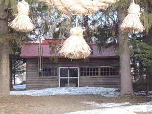 まだ少し、日陰部分に雪が残っている栃木神社。
