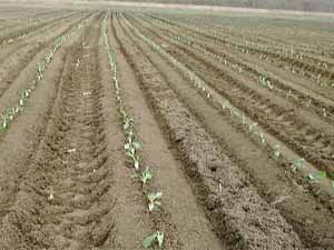 機械を使い、まだ雪の残る中、ハウスで種を蒔いて作った