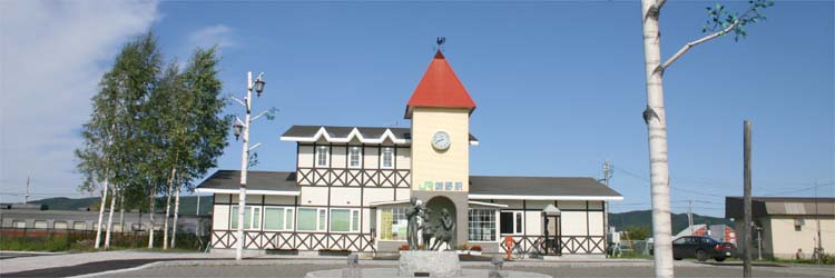 旧国道、端野駅近辺。石積み倉庫の向こう側に駅。