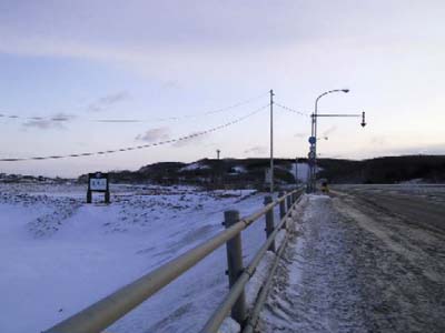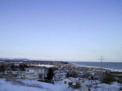 常呂漁港付近の高台 遠くに能取岬、知床連山