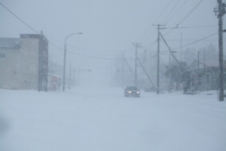 こちらは、国道240号線沿いの大通り。吹雪です。