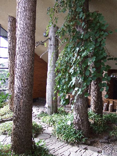 | 木材工芸館1階の展示スペース。相変わらずうっそうとしていて、雰囲気があります。 |