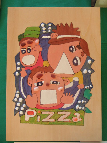 | 大人の部・特別賞「好きなキャラパズル」。 絵の部分がパズルになるようです。奥にいるのは、しんちゃんでしょうか? |