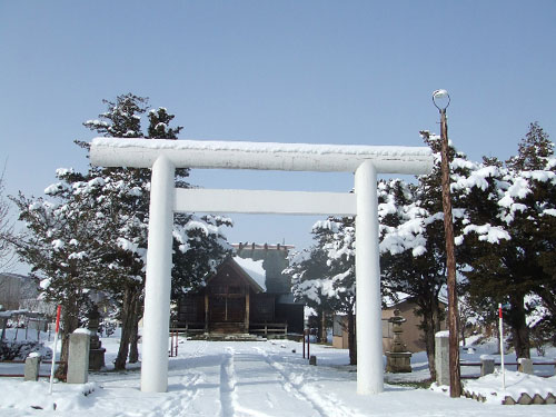 | 木曜日の津別神社。ご覧の通り、雪が積もっています。 先週は、週末までずっと雪が降り続けていたような気がする……。 |