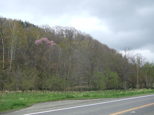 先週の暖かさで、一気に開花した市街地の桜。平日だったので、撮るいとまがありませんでした(←言い訳)。さて週末、ここは津別町と北見市の町界付近。開成峠のふもとです。右に曲がればチミケップ湖、左に目をやると……