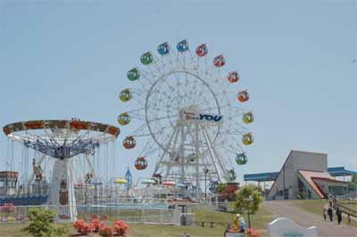 | 国道238号線の計呂地(けろち)を過ぎサロマ湖沿いに進むと小高い丘の上に小さな観覧車が見えてきますここが湧別の道の駅「愛ランド湧別」です。遊園地「Family愛Land YOU」の隣にある楕円の建物「遊YOUぷらざ」の中に はレストラン「彩湖」と売店「YOUショップ」があり特産品の他にインド民芸品(♪何でだろ〜)もありインド人もビックリ! 遊YOUぷらざの横に停まってる黄色い車は本格インドカレーとナンやタンドリーチキンをデリバリーする「クリシュナExpress号」なんとも辛くて速そうな名前ですがミスマッチな存在感は否めません。肝心のお味のほうは休日になると行列が出来ることもあり期待できそうです。 |