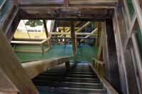 その理由は、一層と二層のお堀側は江戸後期の天守閣の特徴的な切妻屋根の破風が中央に造られているからだそうで、西と北は地上からの攻撃を考え鉄の扉で櫓のように実用的に造られてるのだそうです。(なるほど)