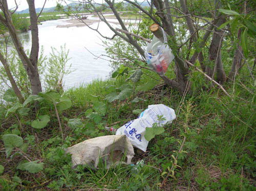 | ゆうべつアウトドアクラブ恒例カヌーで川のゴミ拾いは9回目今年は雪解けが遅いせいか水温が低く水量も多め。参加者は、北見工業大学に留学している中国からの研究生2人と佐呂間町のAETのほか北見、美幌、佐呂間と多彩で、陸上からは湧別川のサクラマスを考える会のメンバーがトラックで回収をサポートしてくれました。 全体的にゴミの量は少なかったのですが相変わらず目立つ釣人の捨てたルアー容器や弁当容器などがありマナーの悪さに閉口してしまいます。ゴミ拾いの後は昼食会、メンバーの肉牛農家提供の和牛カルビを堪能しました。 |