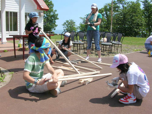 湧別町の社会教育委員でつくる親子いきいき協議会では、文部科学省の家庭教育支援総合推進事業の委託をうけ地域の自然や人材を活用したもの作りや昔遊びなどを通して、親と子どものふれあいを深める「親子いきいき遊び隊」を町内志撫子(しぶし)のいこいの森で開催しました。