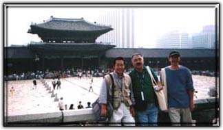 地下鉄駅に到着して安心したのもつかの間、今度はハングル文字だけの世界に突入してしまった。私の買ったガイドブック「地球の歩き方」には地下鉄路線図の駅名にはすべて漢字表記がしてあり、旅の前にはこれならなんとかなるだろう・・・と安易に考えていた私たちではあるが、切符の自動販売機の上にある路線図には当然のごとくハングル文字しか書かれていなかった。うぉぉっっぅうっどうしよう。英語表記もあるにはあるがとても小さな文字だ。そろそろ目に来はじめている我々にはチトきついものがあった。現在地の駅をまず見つけ、それから今日の最初の訪問地「景福宮(Kyonbokkun)」を探す。ようやく見つけ、嬉々として切符を購入しようとした。だがコインを入れてもコインが戻ってくる。「どうして?なぜ?」の世界。周りで我々の悪戦苦闘ぶりを見ていた女子高生が切符の買い方を教えてくれた。驚くことにソウルの地下鉄ではコインを入れる前に「500Won切符を一枚」とか「800Won切符を二枚」とかボタンを押して宣言してからコインを入れないとダメなのだ。う〜ん、国によって違うな〜。【注・あとで分かったことであるがソウルの地下鉄はかなり外れのほうまで行っても500Wonで大丈夫。日本円にすると五十円くらいだから日本と比べると格安といえるだろう。】