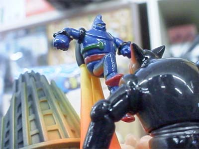 | 巨人たちの戦い 鉄人ってでかい手を持ってますねぇ。あんなんでぶん殴られたら、壊れますね。相手の巨人も。 |