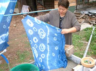 | ● | 手作り体験コーナー『天然インド藍で絞り染め』。薄手の木綿生地を染めてストールやタペストリーを作ります。 |