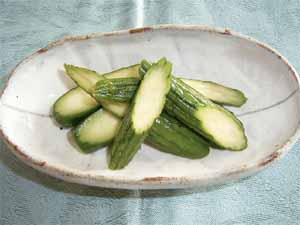 (2)そこへきゆうりを入れ、そのまま常温に置く。