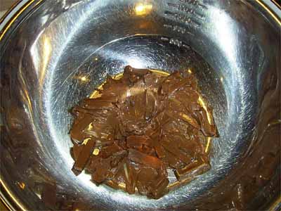 | 5. | チョコレートをきざみ湯せんで溶かす。 |
